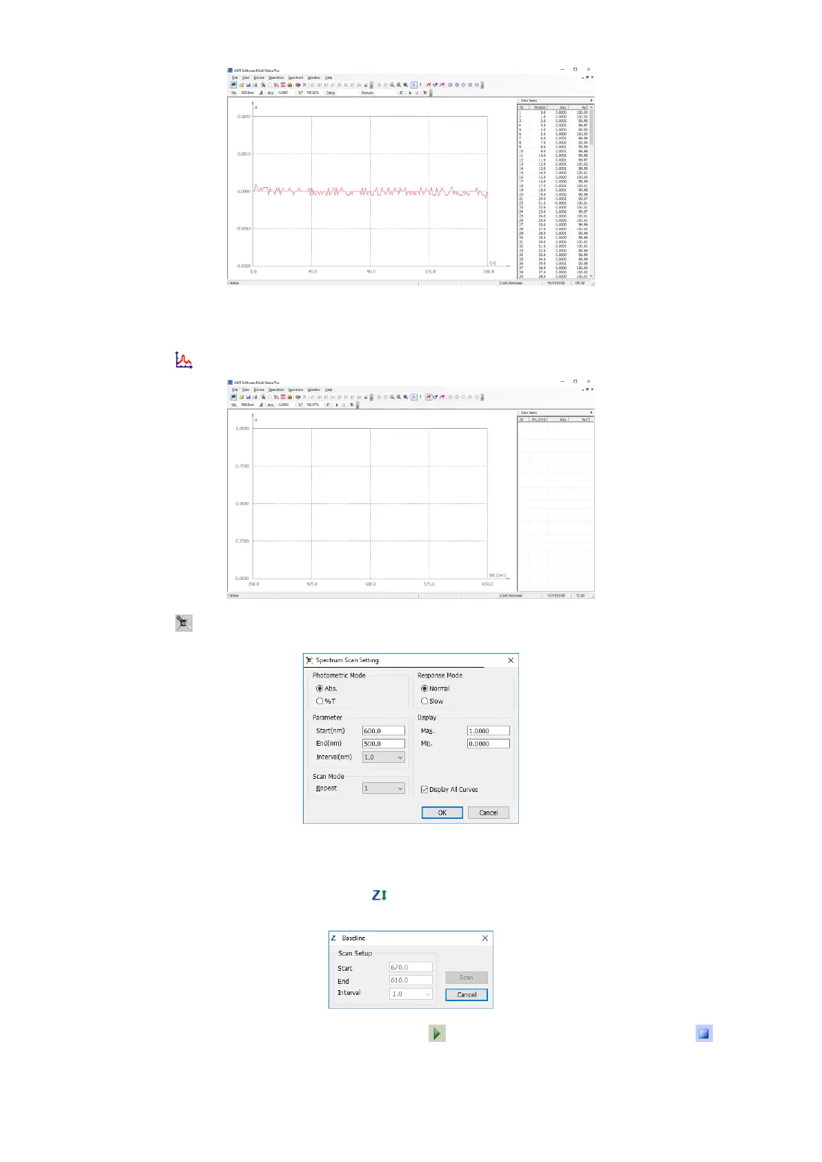 5. Put reference into the light path, click the icon in the Tool Bar, then the dialog box of Baseline displays in