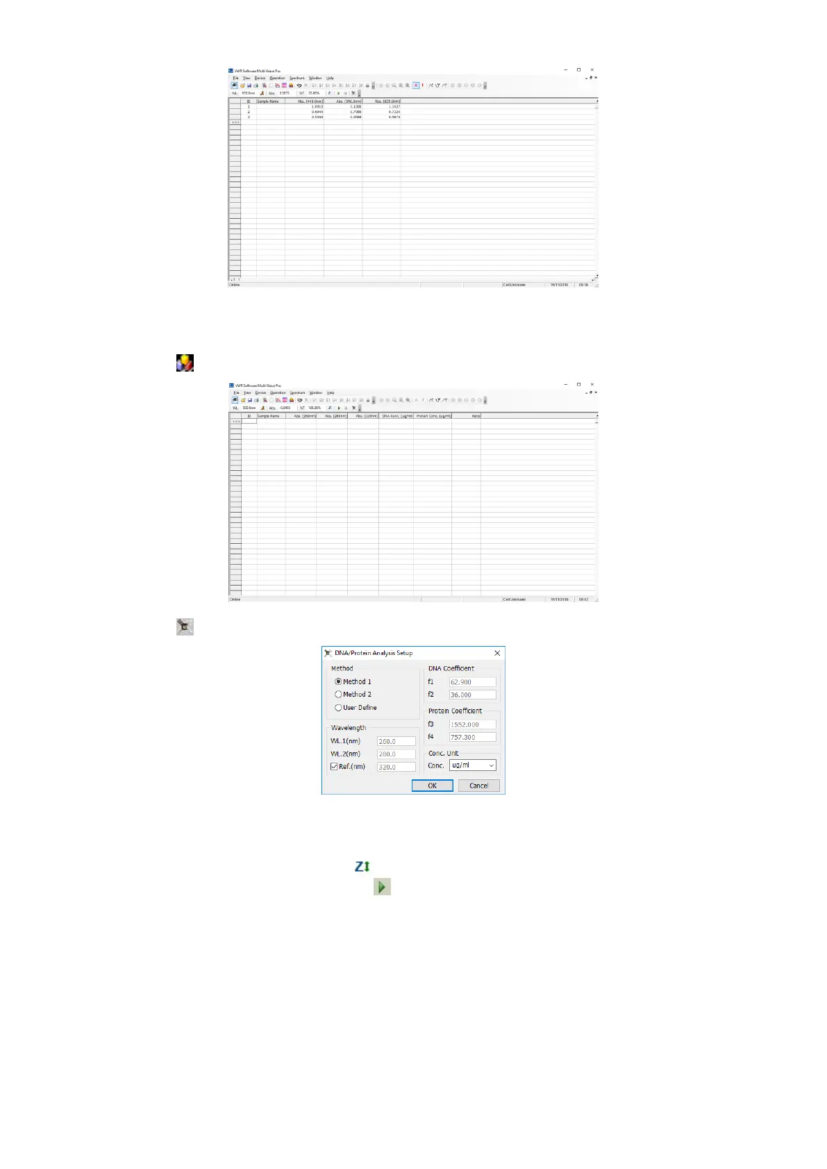 6. Pull the sample in the light path, click the icon to measure. The result will display in the data sheet.
