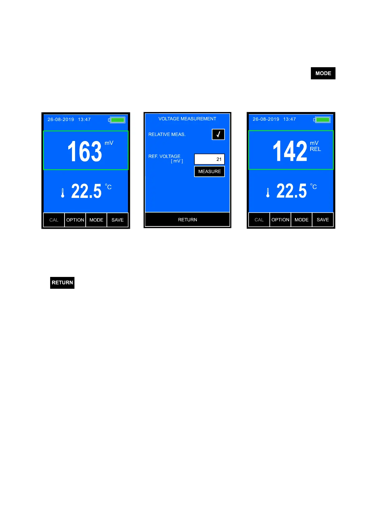 If the relative measurement has been chosen, next to the redox value the