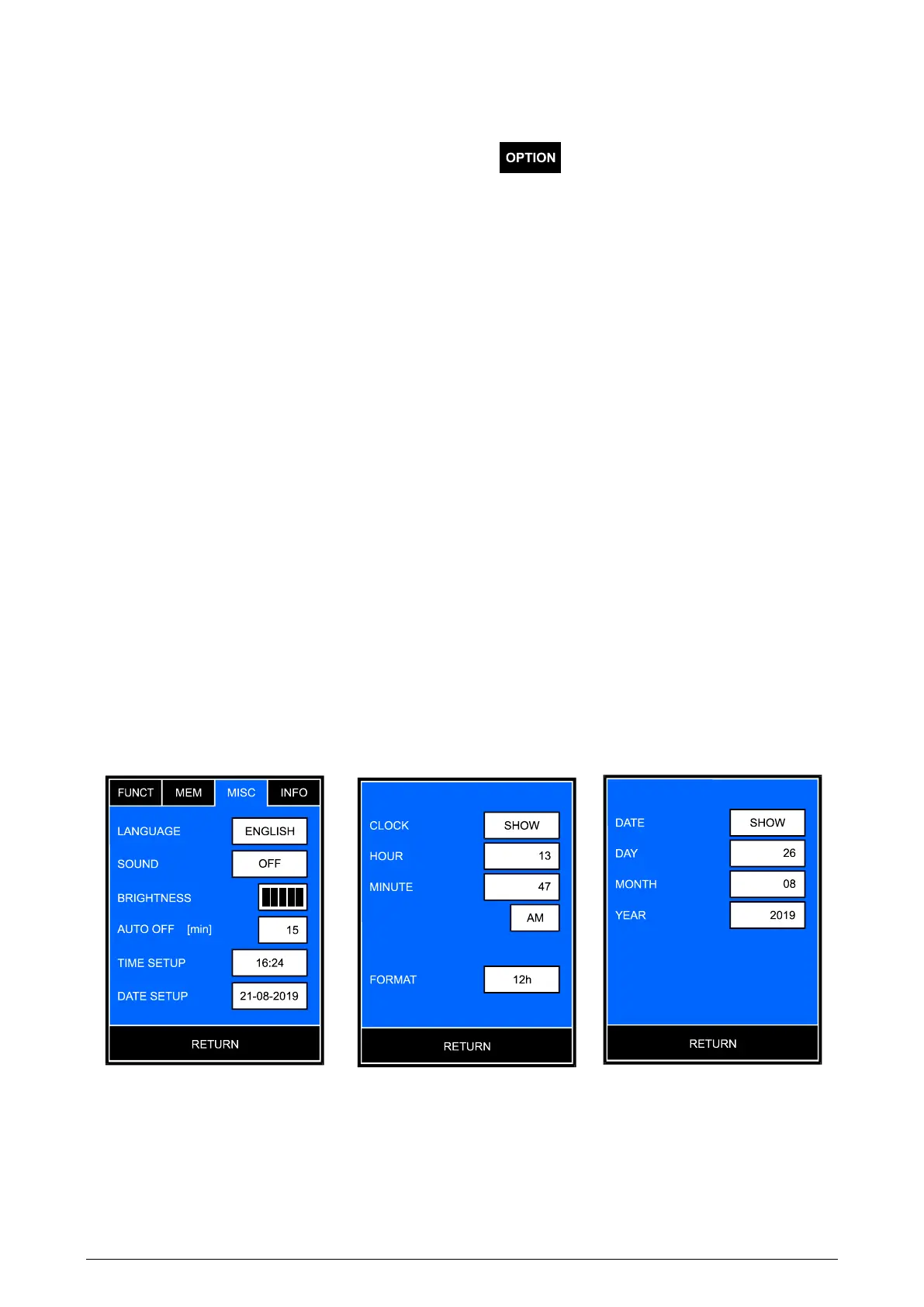 FUNCT. - choose the measurement functions (pH/mV) to be displayed