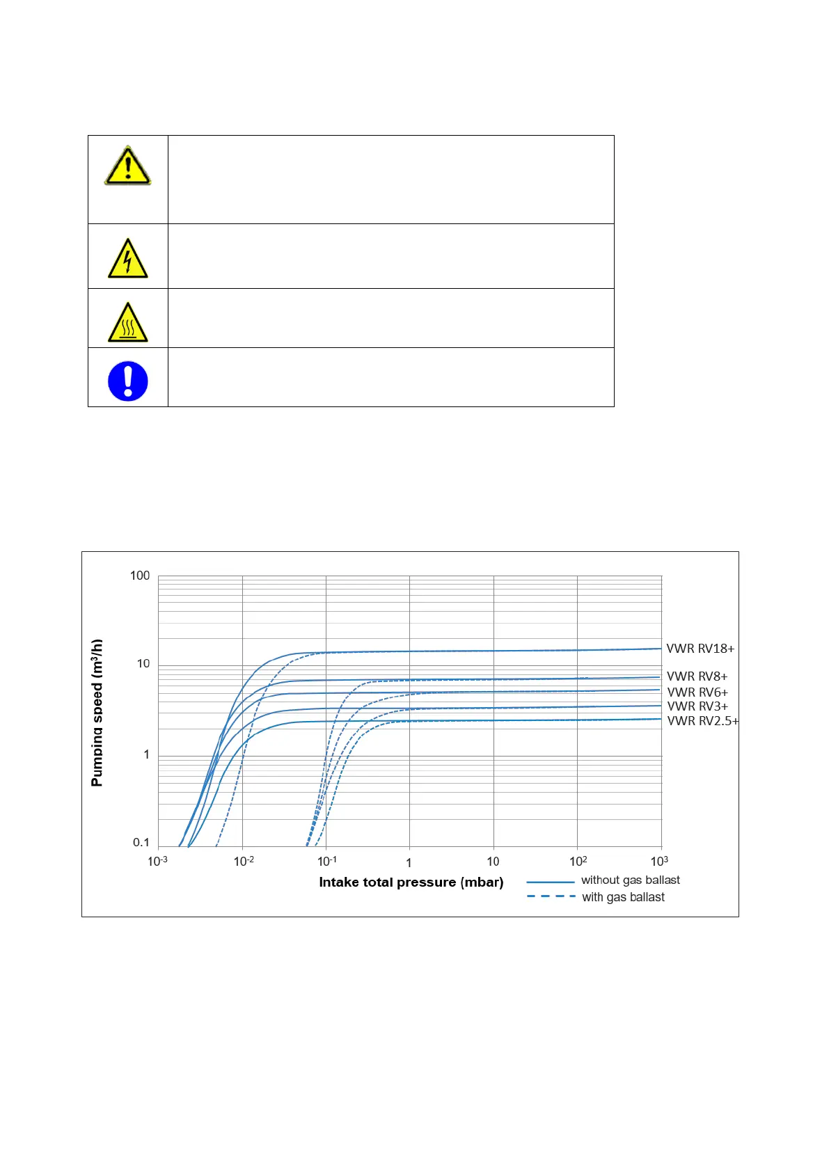 Fig. 4: Intake Pressure / Pumping Speed – Diagram VWR RV2.5+/RV3+/RV6+/RV8+/RV18+