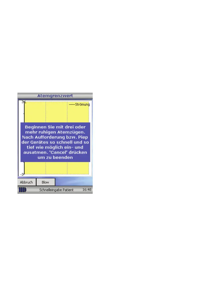 Auf der Anzeige wird der Patient angewiesen, kräftig zu atmen, um