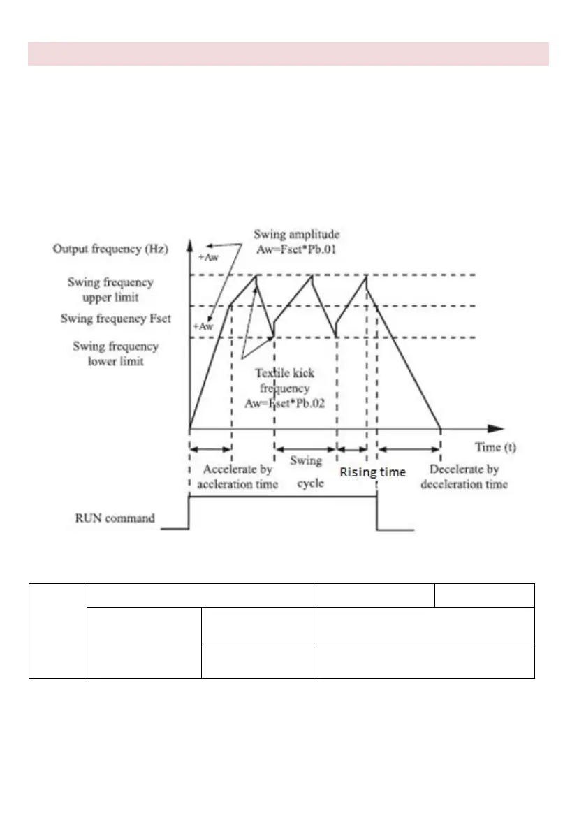 The swing frequency amplitude is set in Pb.00 and PB.01. When Pb.01 is set to 0, the swing