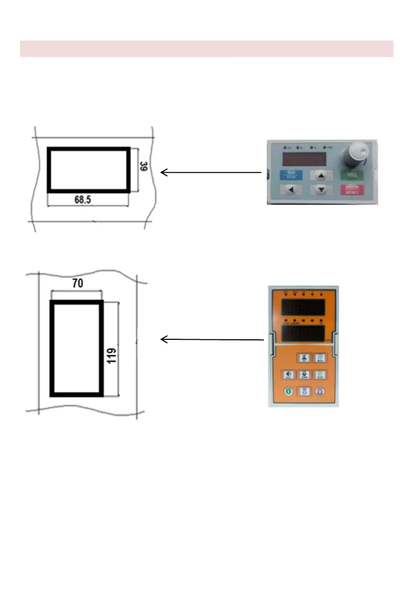 For models ..0004 to 0300 (i.e. 0.4kW - 30 kW) .................... 68,5 x 39 mm