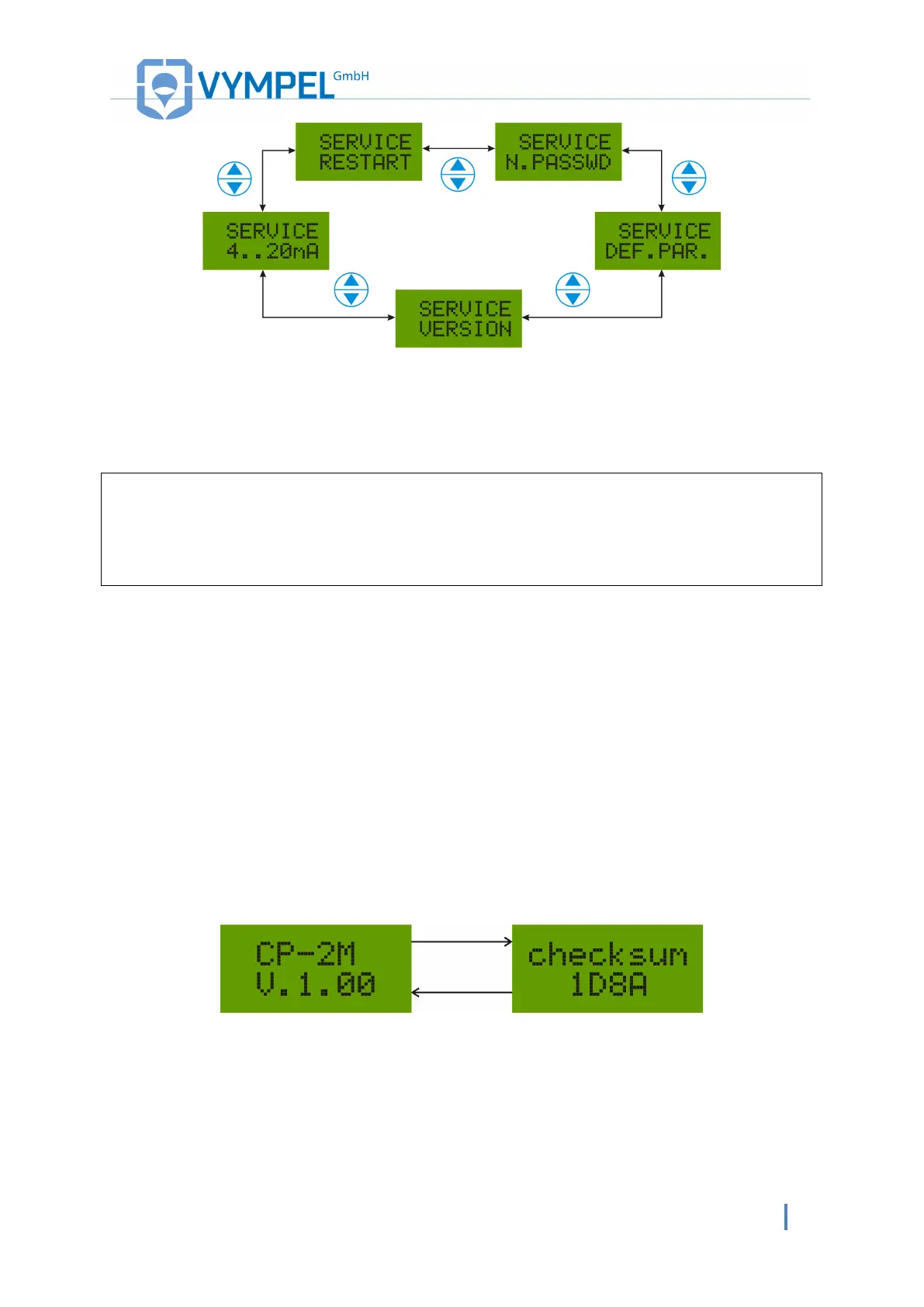 Illustration 9: «Service menu» sub-menus