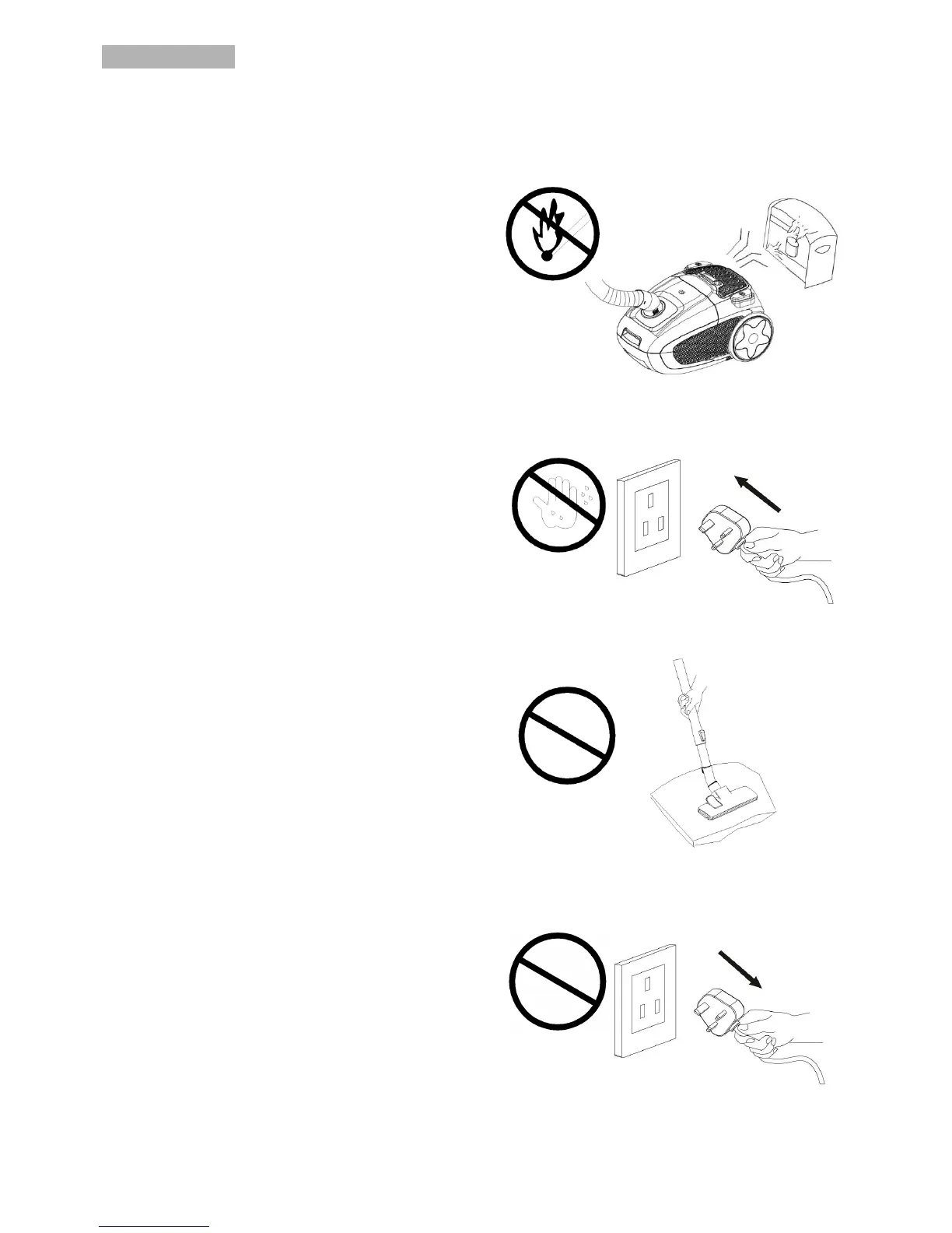 4. Do not pull by the cable when unplugging the vacuum.