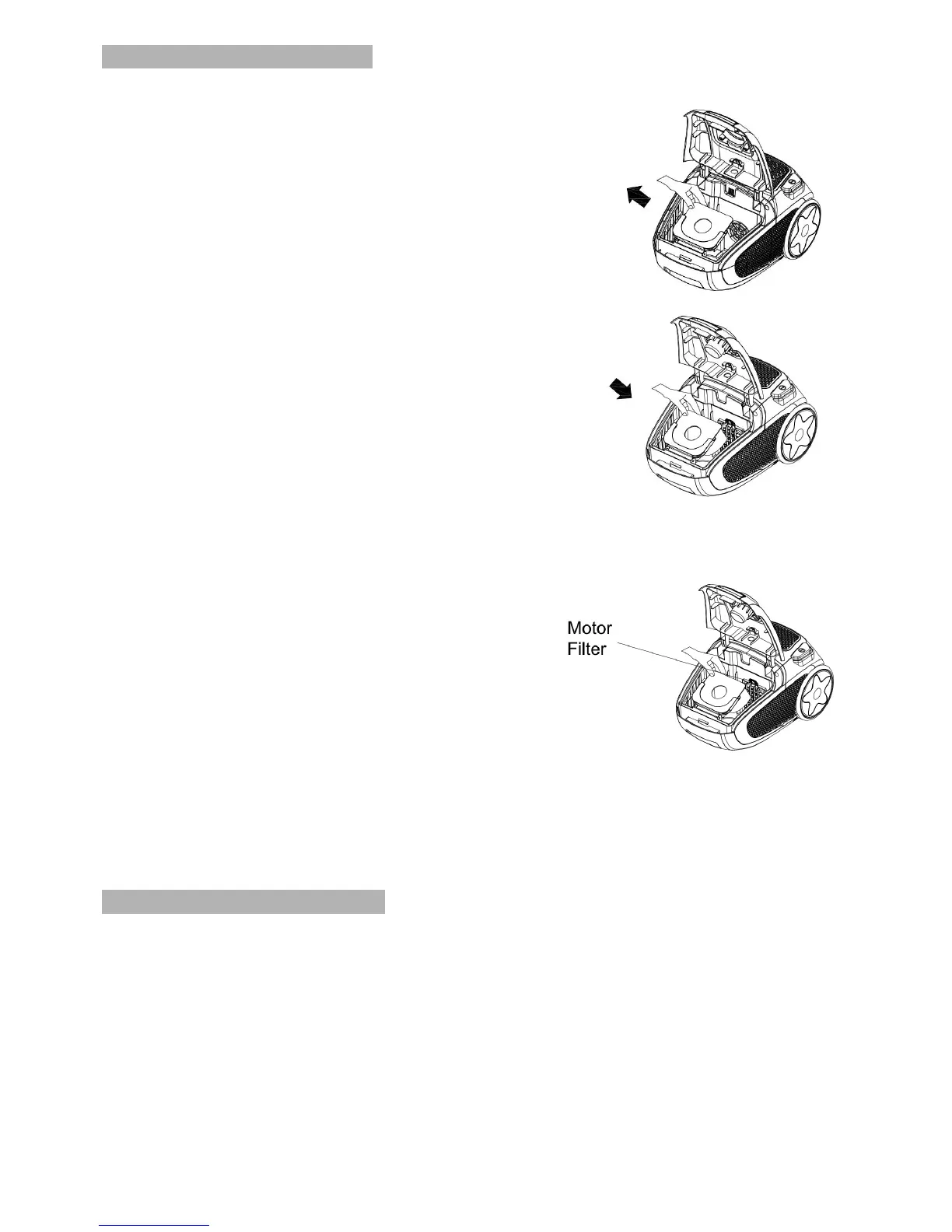 IMPORTANT! Never use the vacuum cleaner without a motor filter.