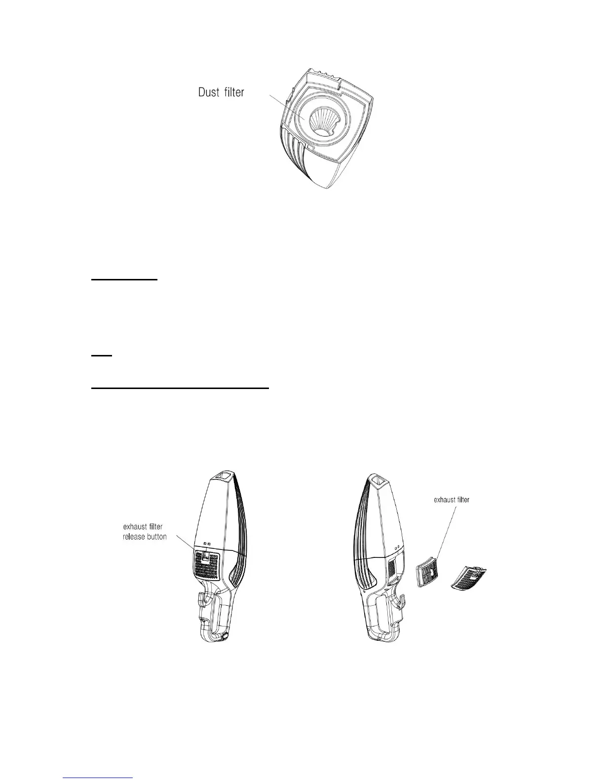 5. Replace the dust filter carefully into the dust container. NEVER operate the vacuum without the filter in place.