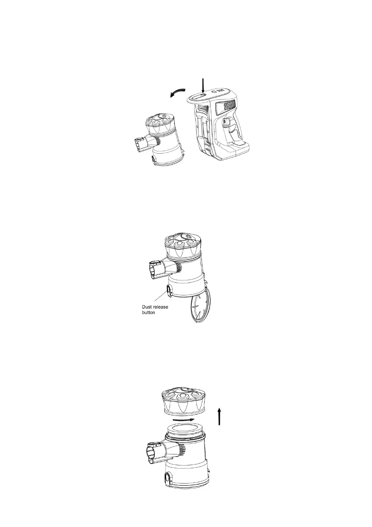 2. Press the dust release button to open the bottom cover and expel trash. Wipe to clean the