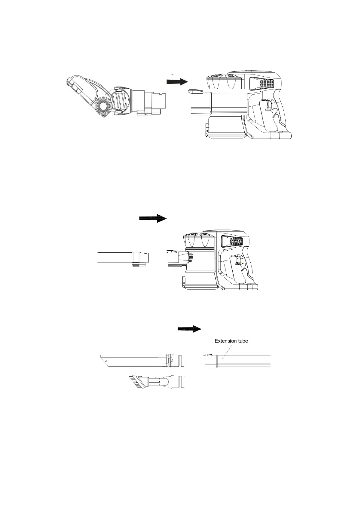 1. Attach the extension wand to the main body by slotting it into place the via the dust inlet.