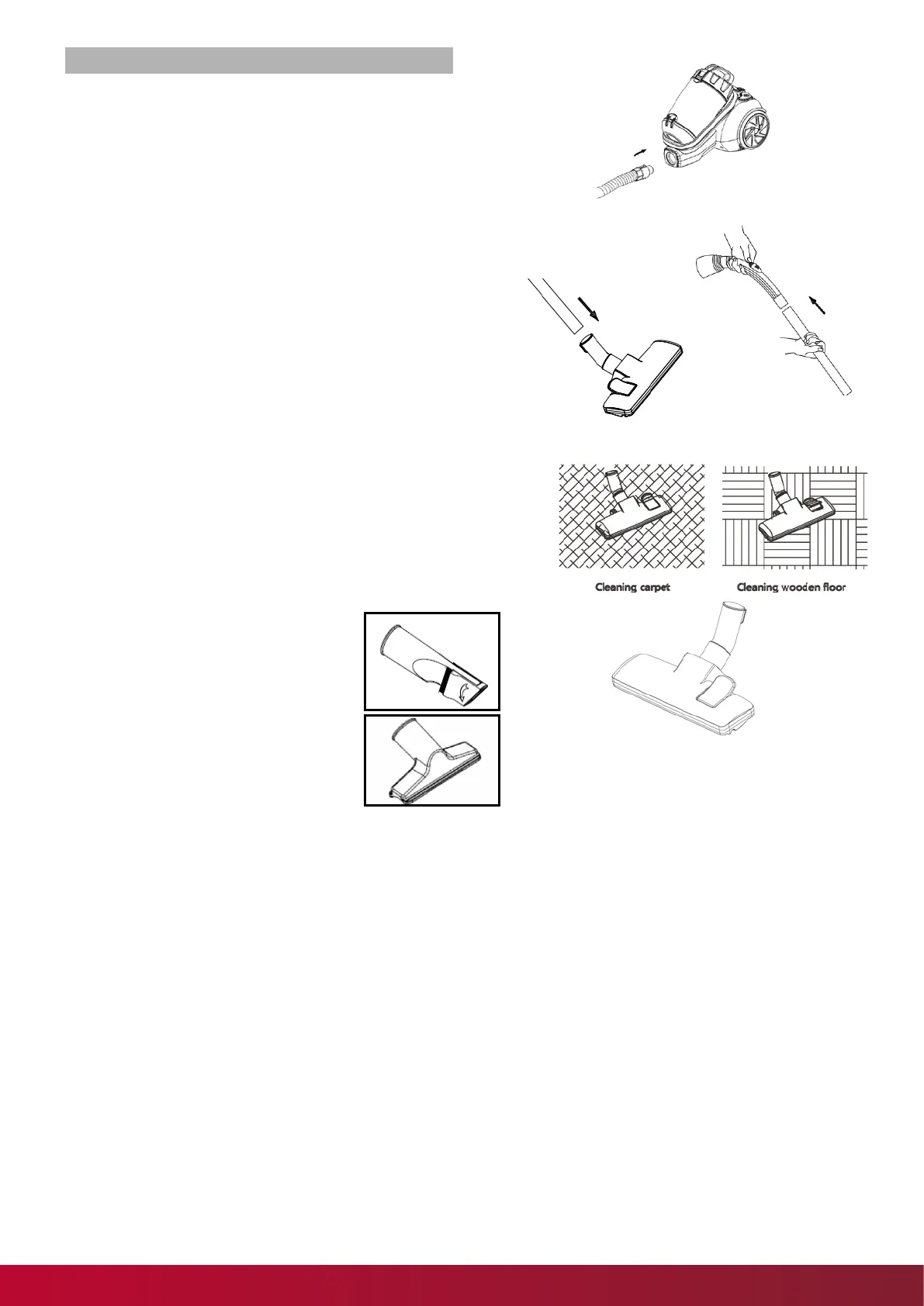 1. Fit the hose on the vacuum cleaner by inserting the rotating hose