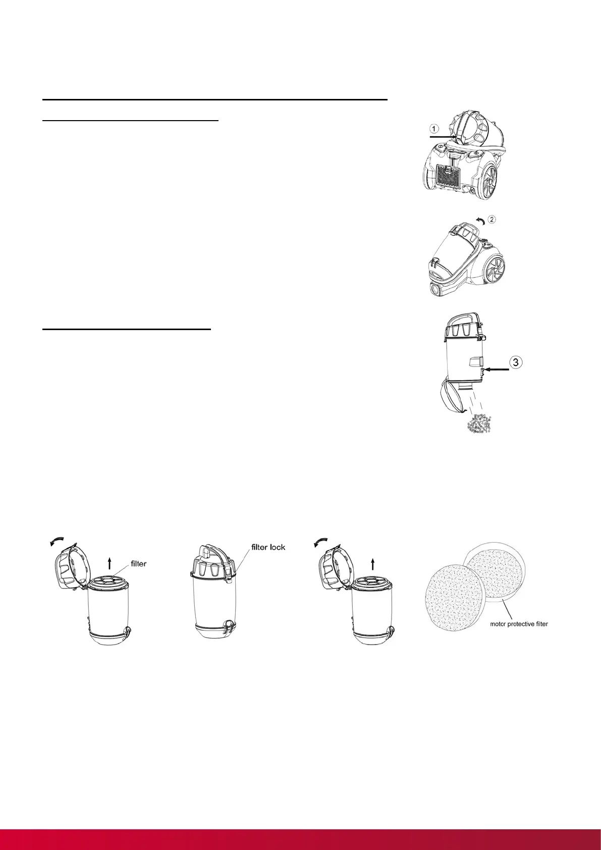 IMPORTANT! Never use the vacuum cleaner without a motor filter.