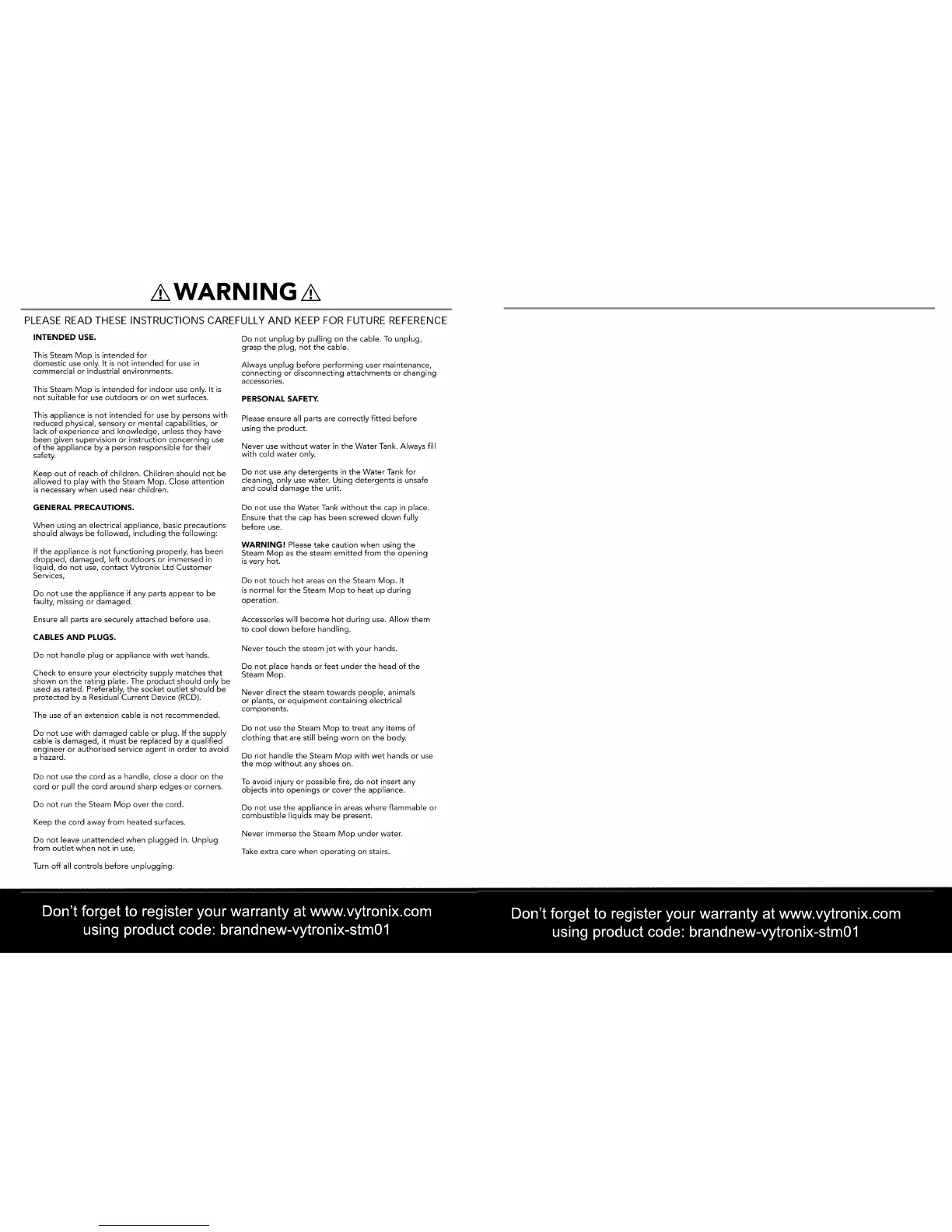 Dont forget to register your warranty at www.vytronix.com