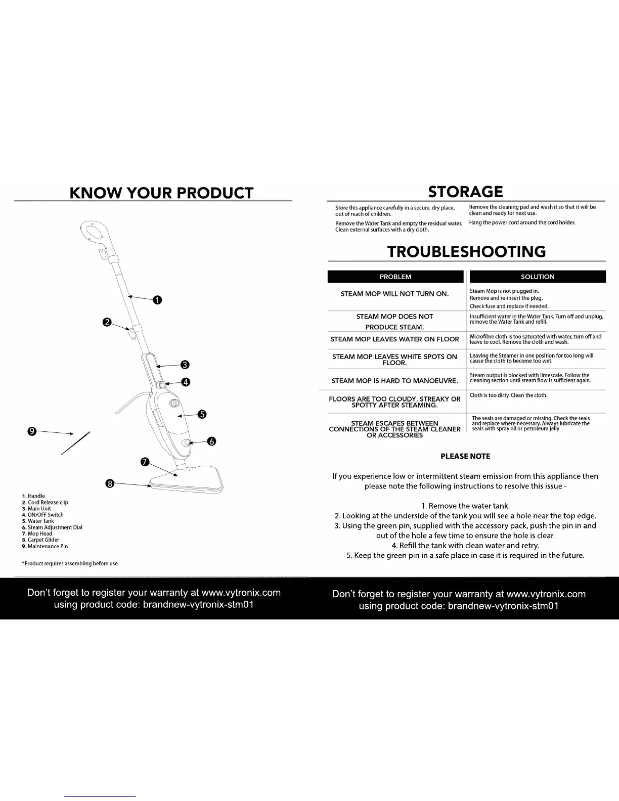Don’t forget to register your warranty at www.vytronix.com