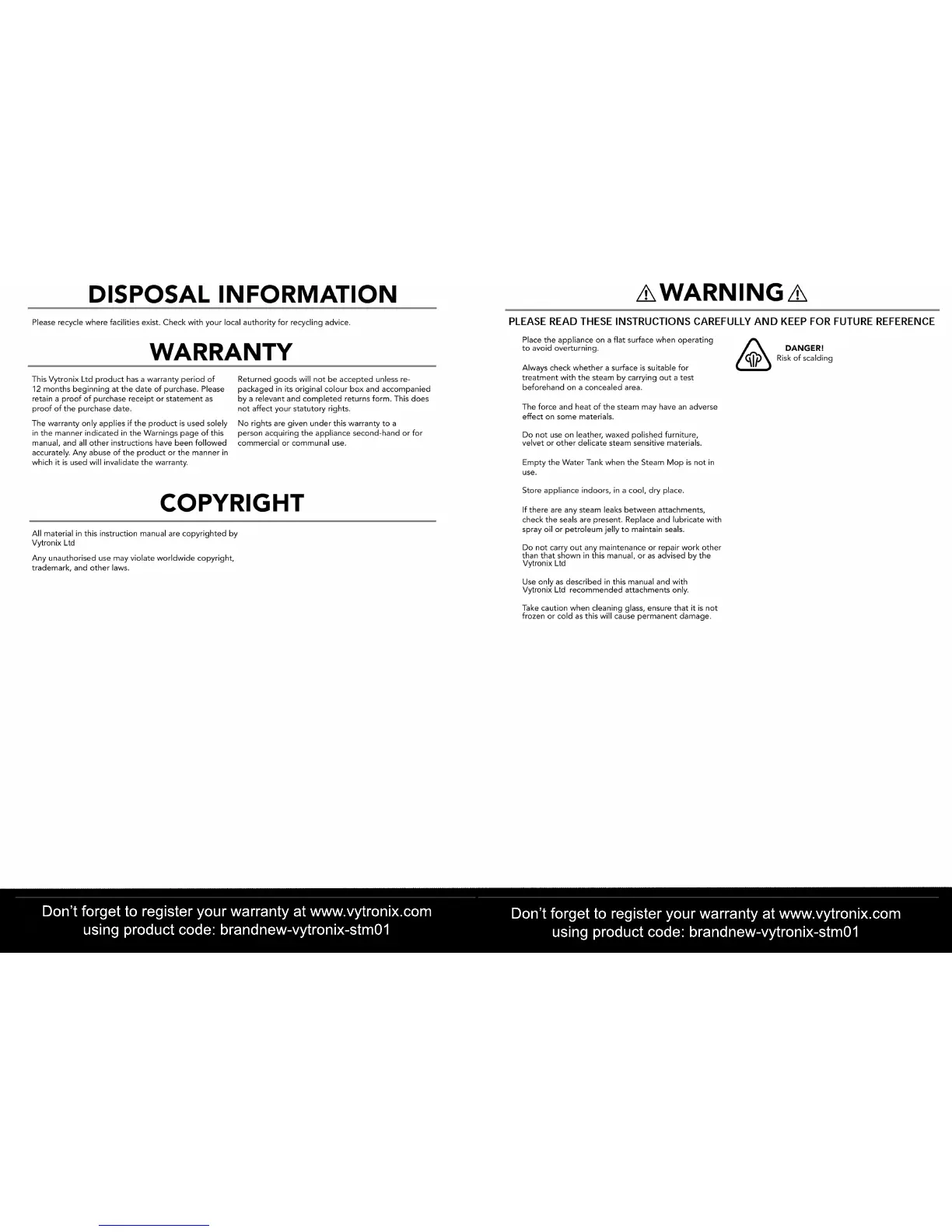 Dont forget to register your warranty at www.vytronix.com