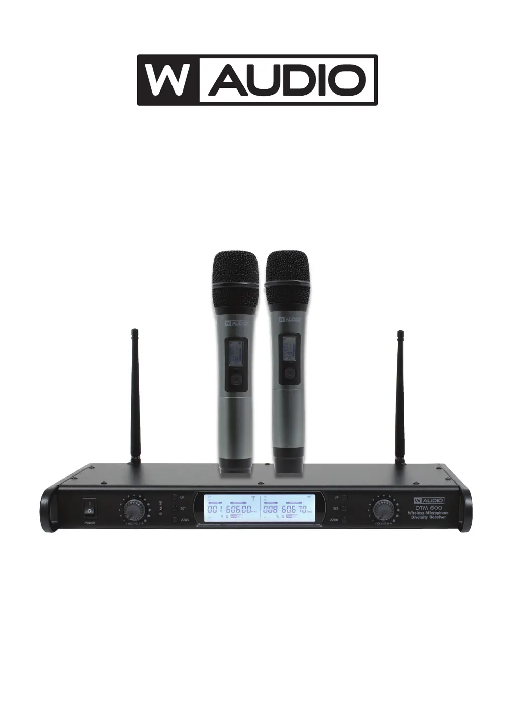 If your W Audio Microphone system receiver produces no sound, first ensure the power button is on and the DC power adapter is properly plugged in. If that's not the issue, check the antenna placement for any interference from metallic objects or other RF sources. Also, verify that the IR Sync operation was completed successfully according to the manual's instructions.