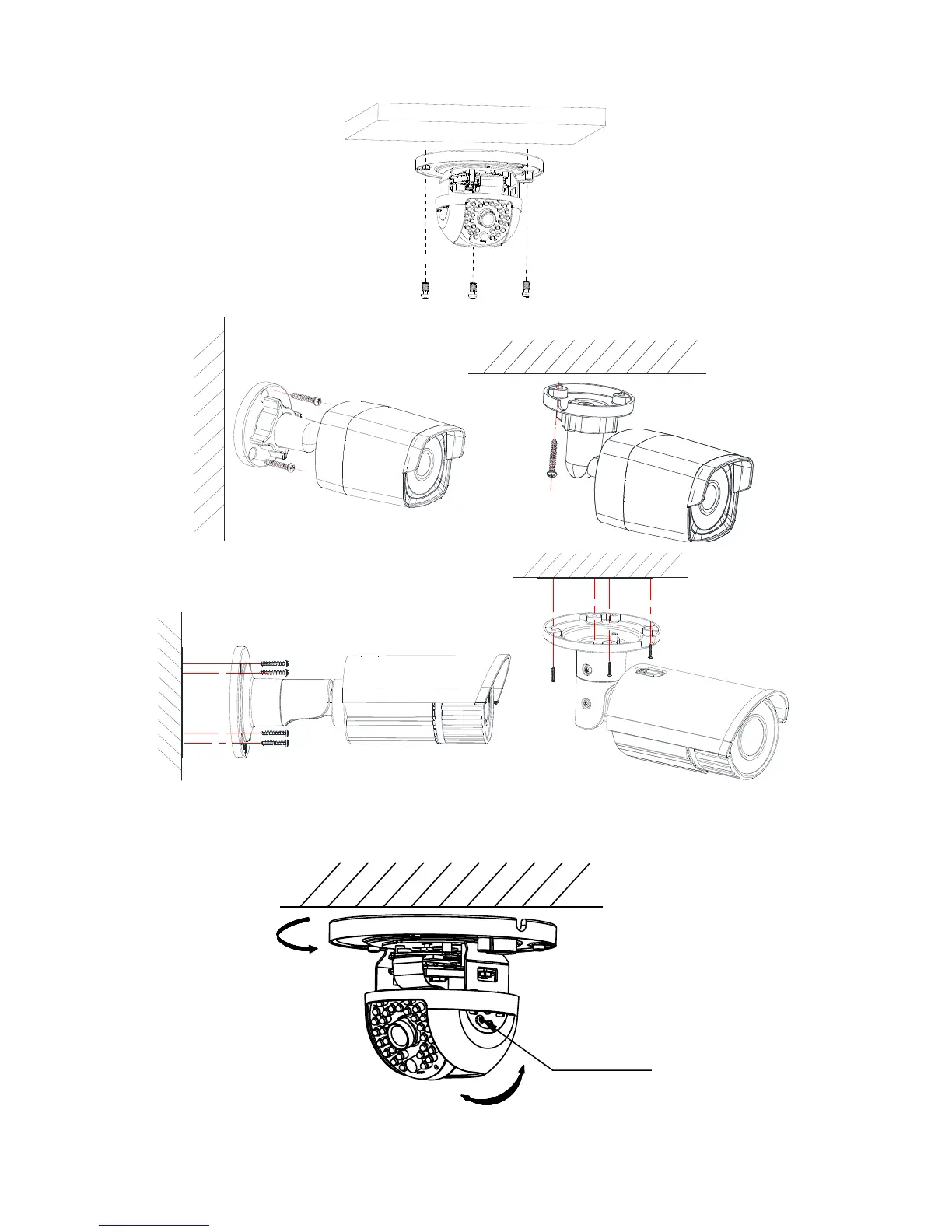 d) Loosen the tilt lock screws, adjust the pan angle and tilt angle.