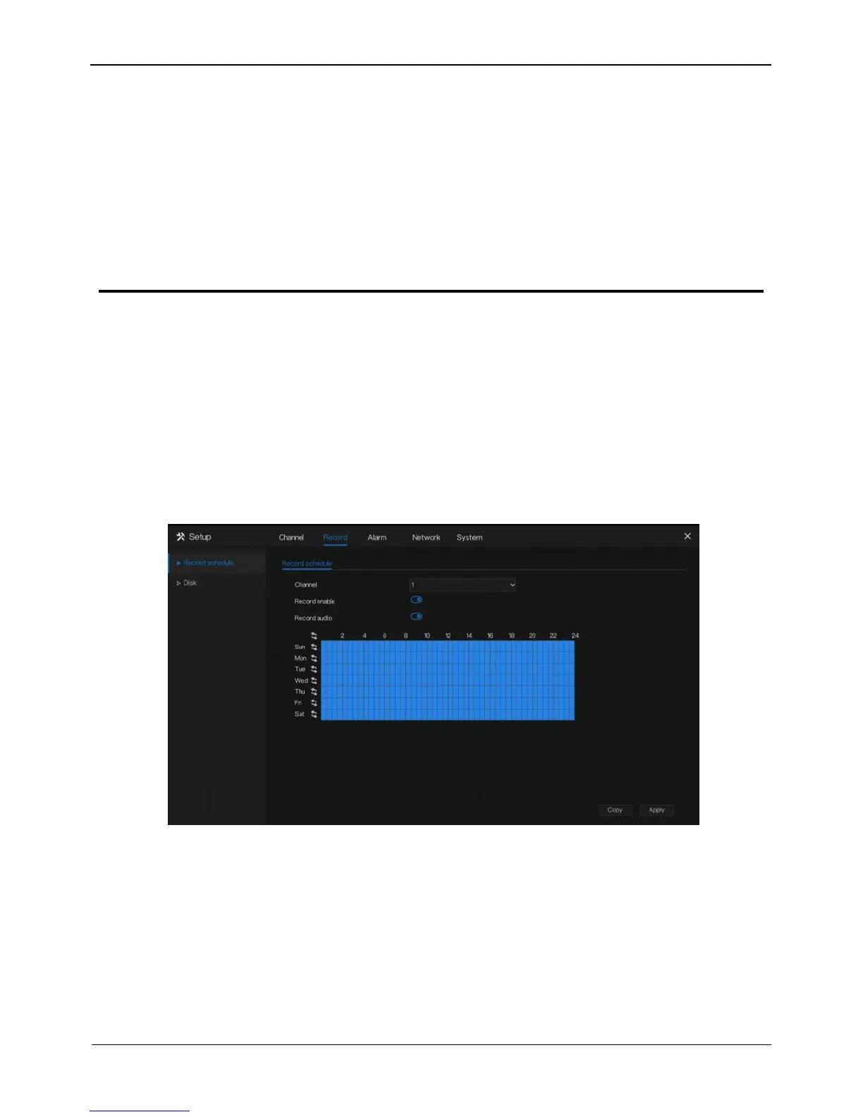 Set the record schedule and view the disk capacity in record screen.