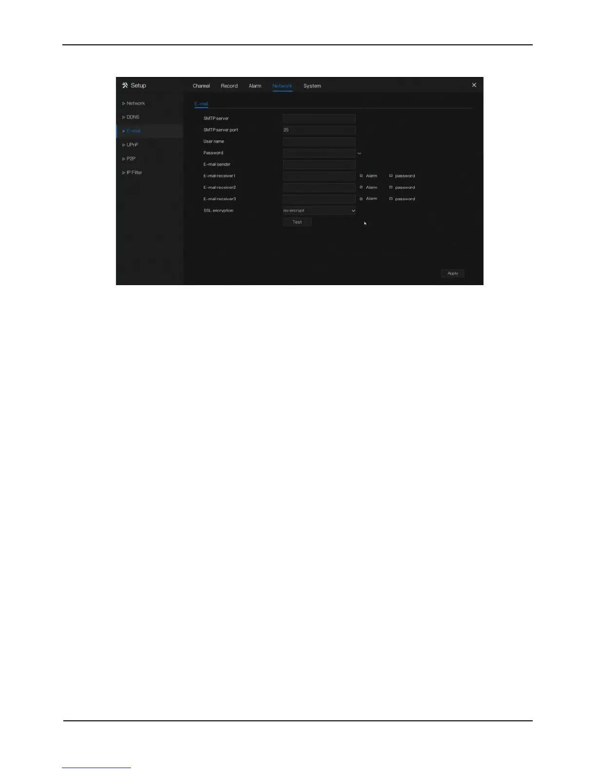 Step 4 Set E-mail for receive alarm. the message “Mail has been sent, please check” is