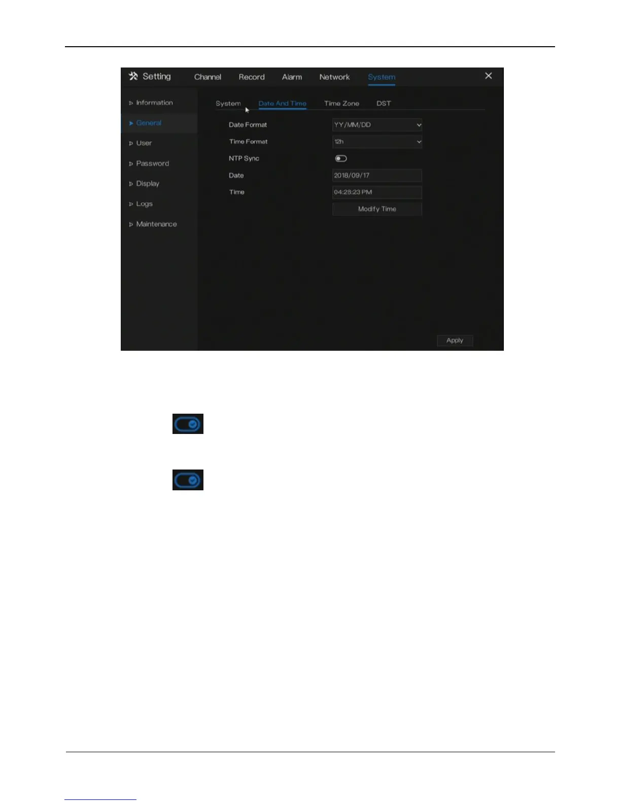 Step 4 Click next to NTP Sync to disable time synchronization. Time