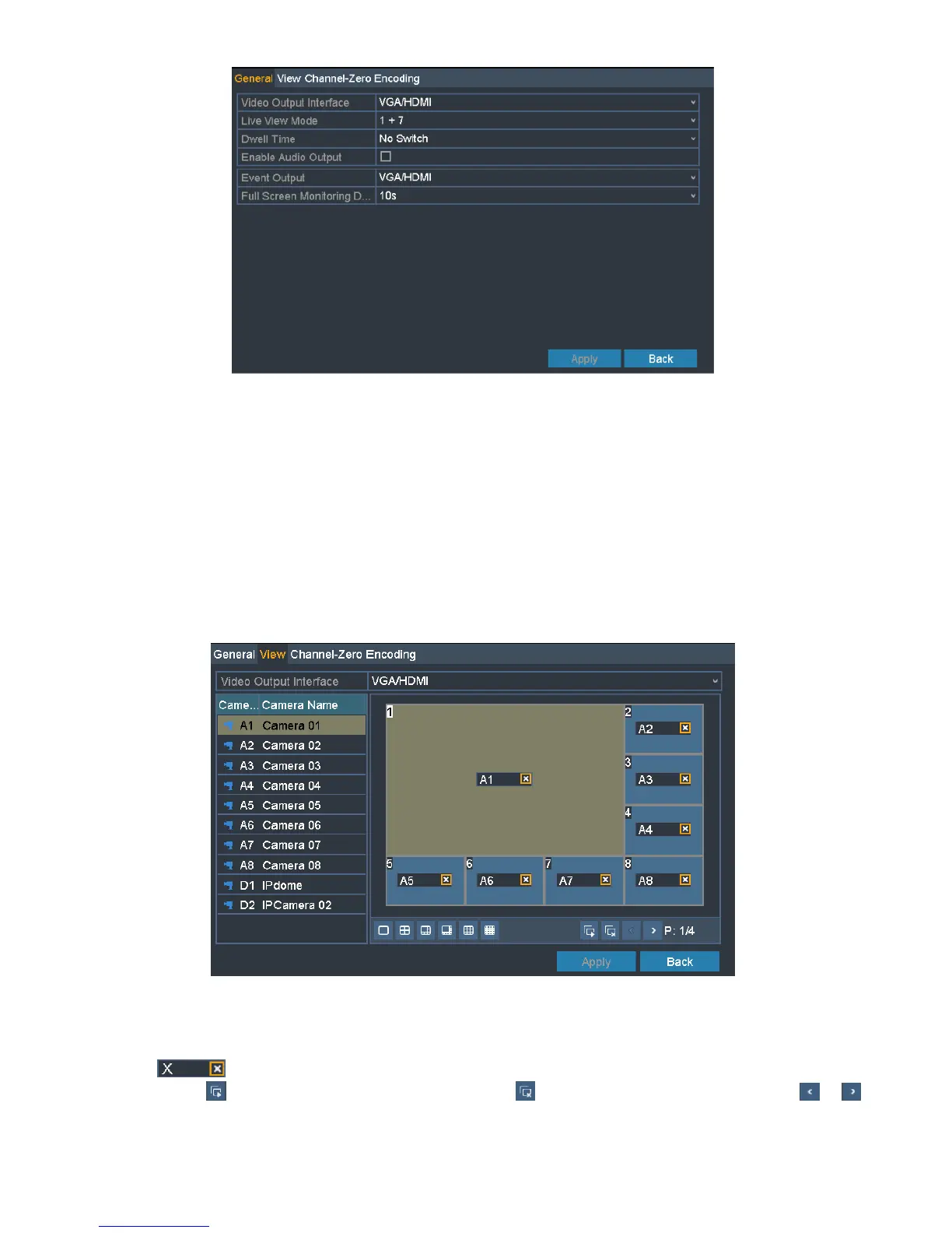 4) You can click to start live view of all channels and click to stop live view of all channels. Click or to