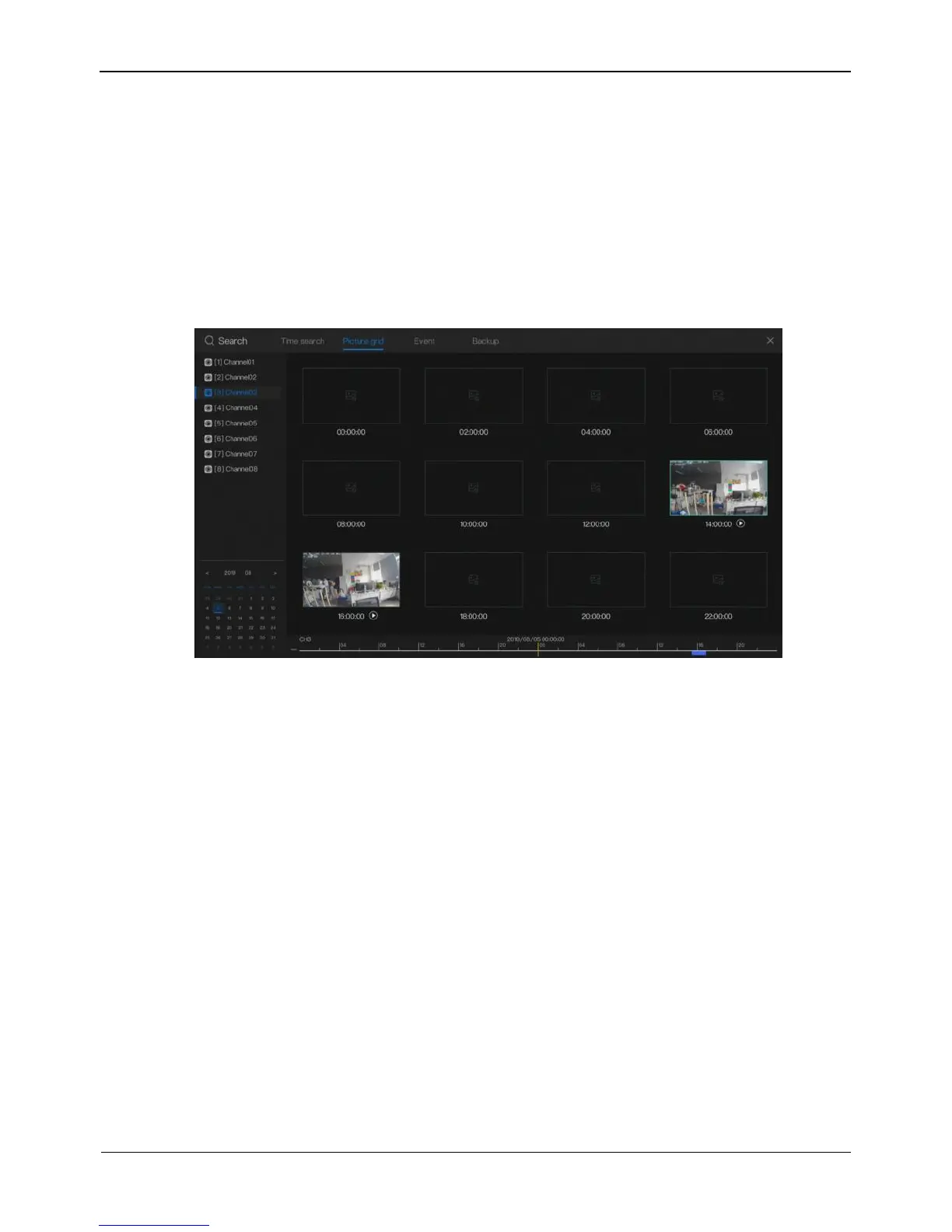 Records on the current day are displayed as 12 thumbnails at 2-hour intervals in