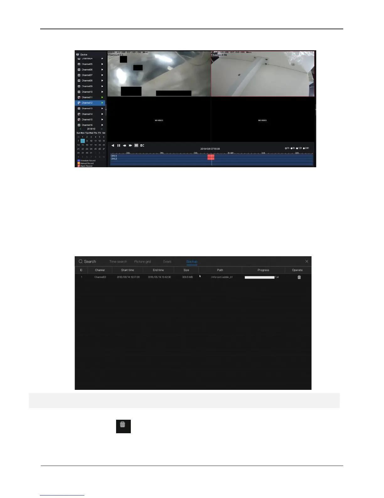 Step 2 includes channel, start time, end time, size, path and progress. Click