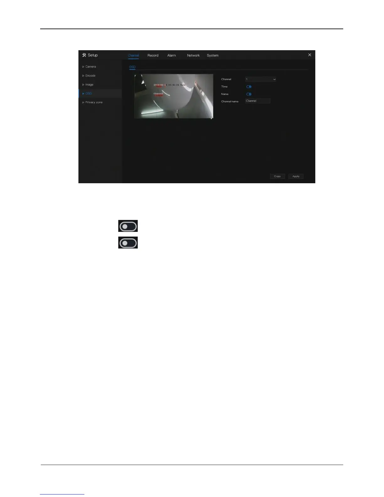 cameras in selected channels , click Apply to save OSD settings.