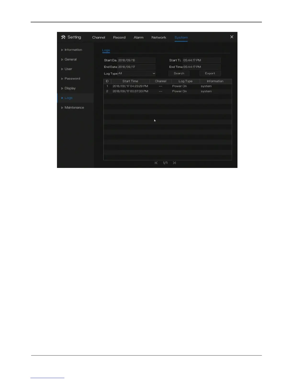 Step 2 Set the logs start date, end date, start time and end time on log screen.