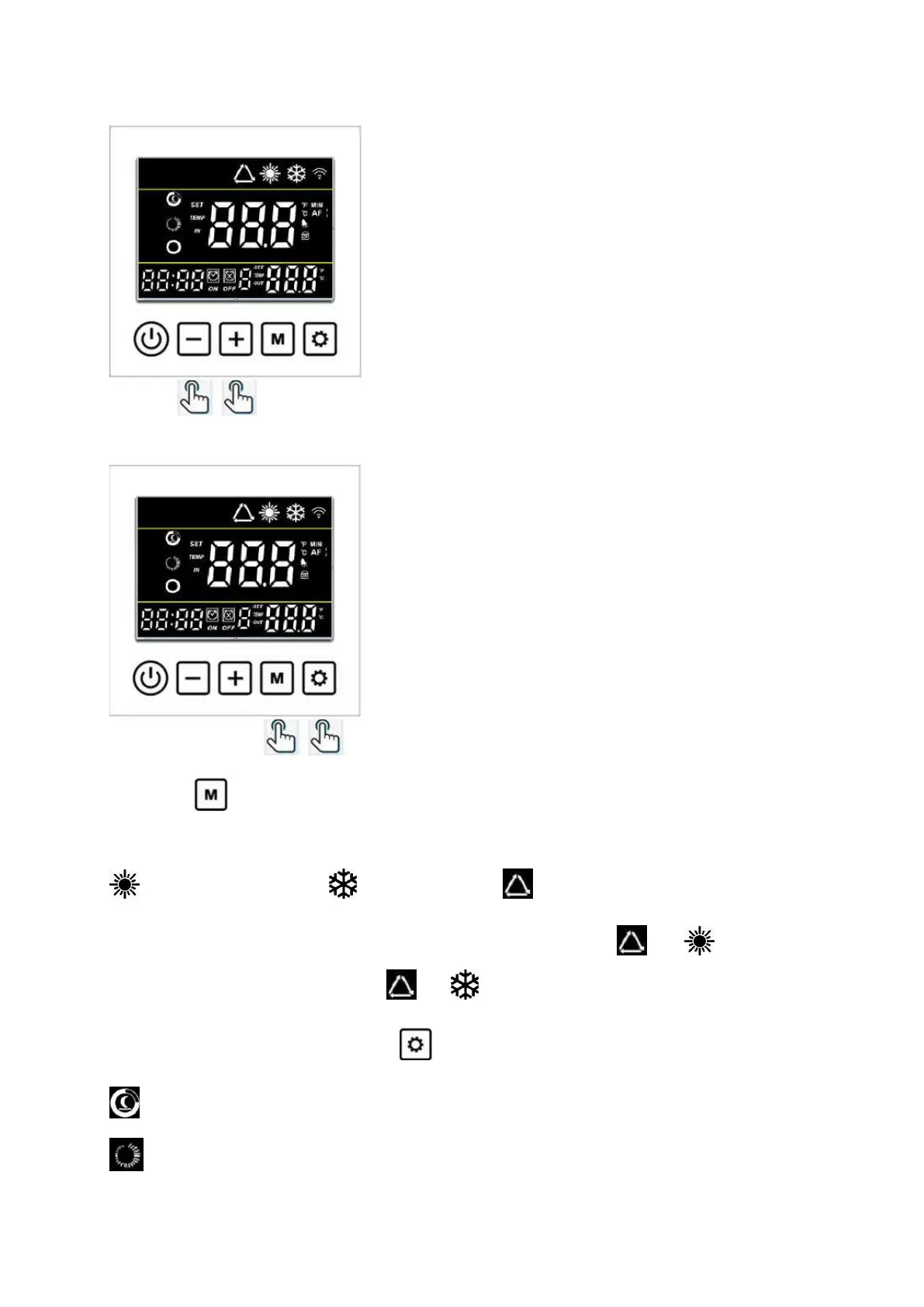 Houd knop 3 seconden ingedrukt om telkens de onderstaande drie bedieningsfuncties te