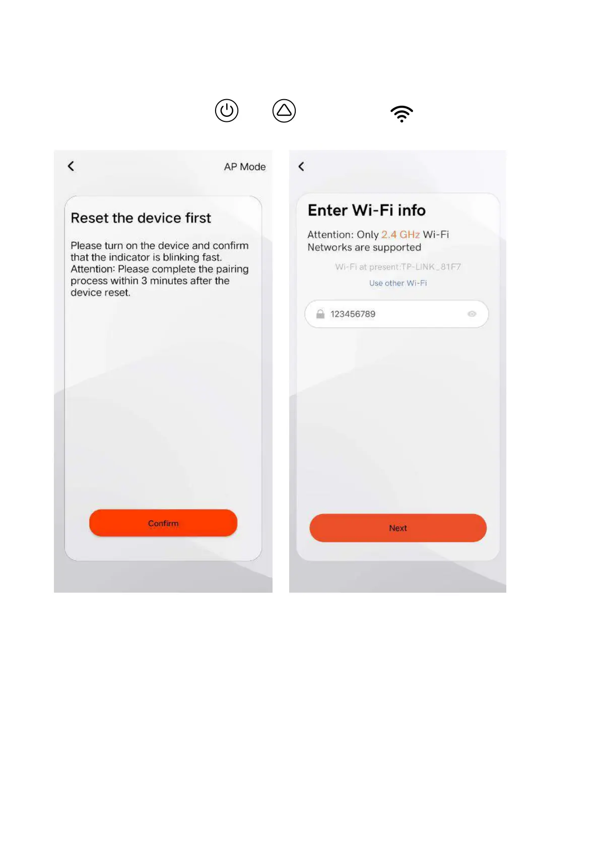 Reset the Wifi function: Hold the and for 5 seconds, the will flash quickly.