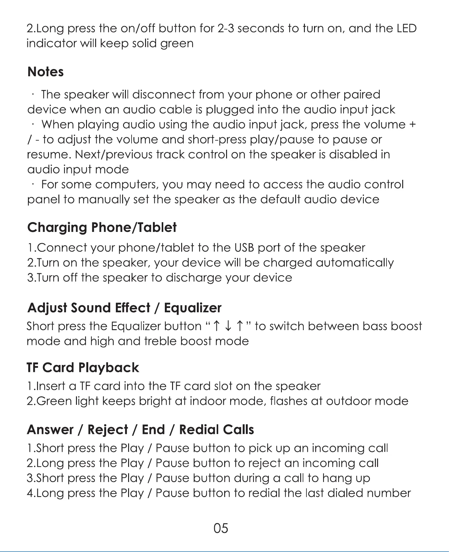 Short press the Equalizer button " t t " to switch between bass boost