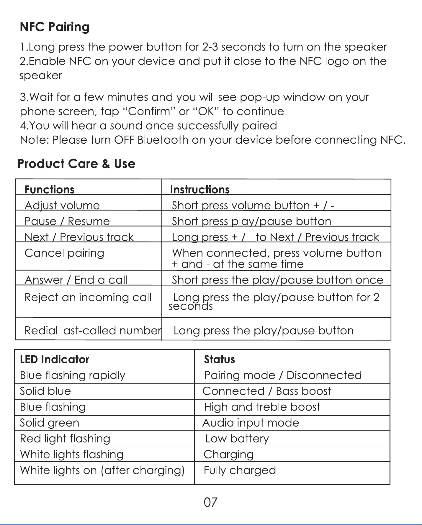 Note: Please turn OFF Bluetooth on your device before connecting NFC.