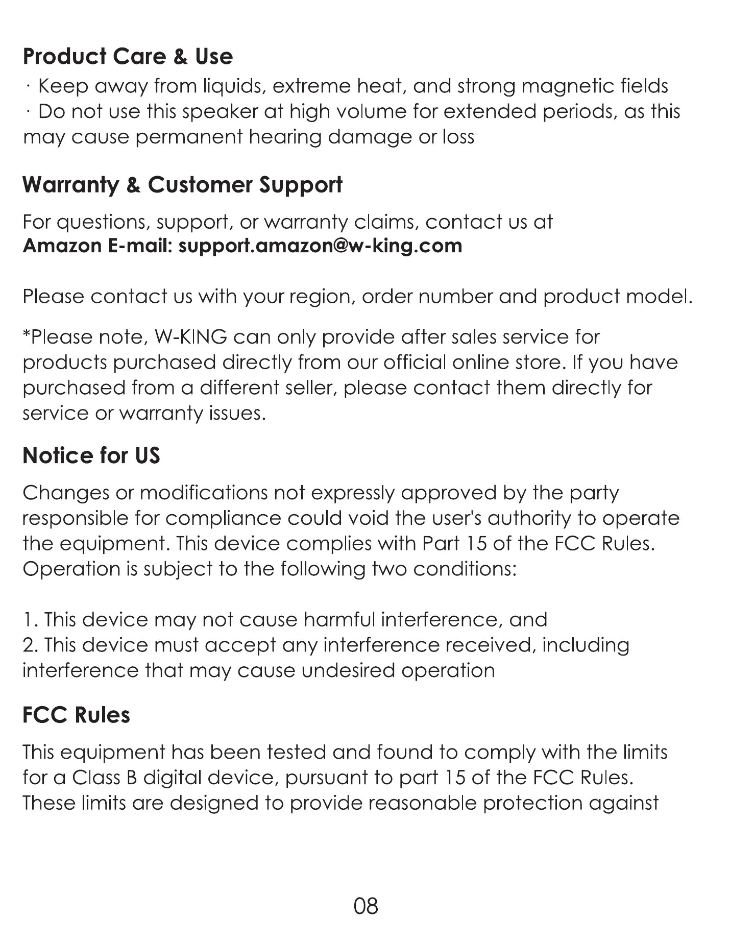 Amazon E-mail: support.amazon@w-king.com