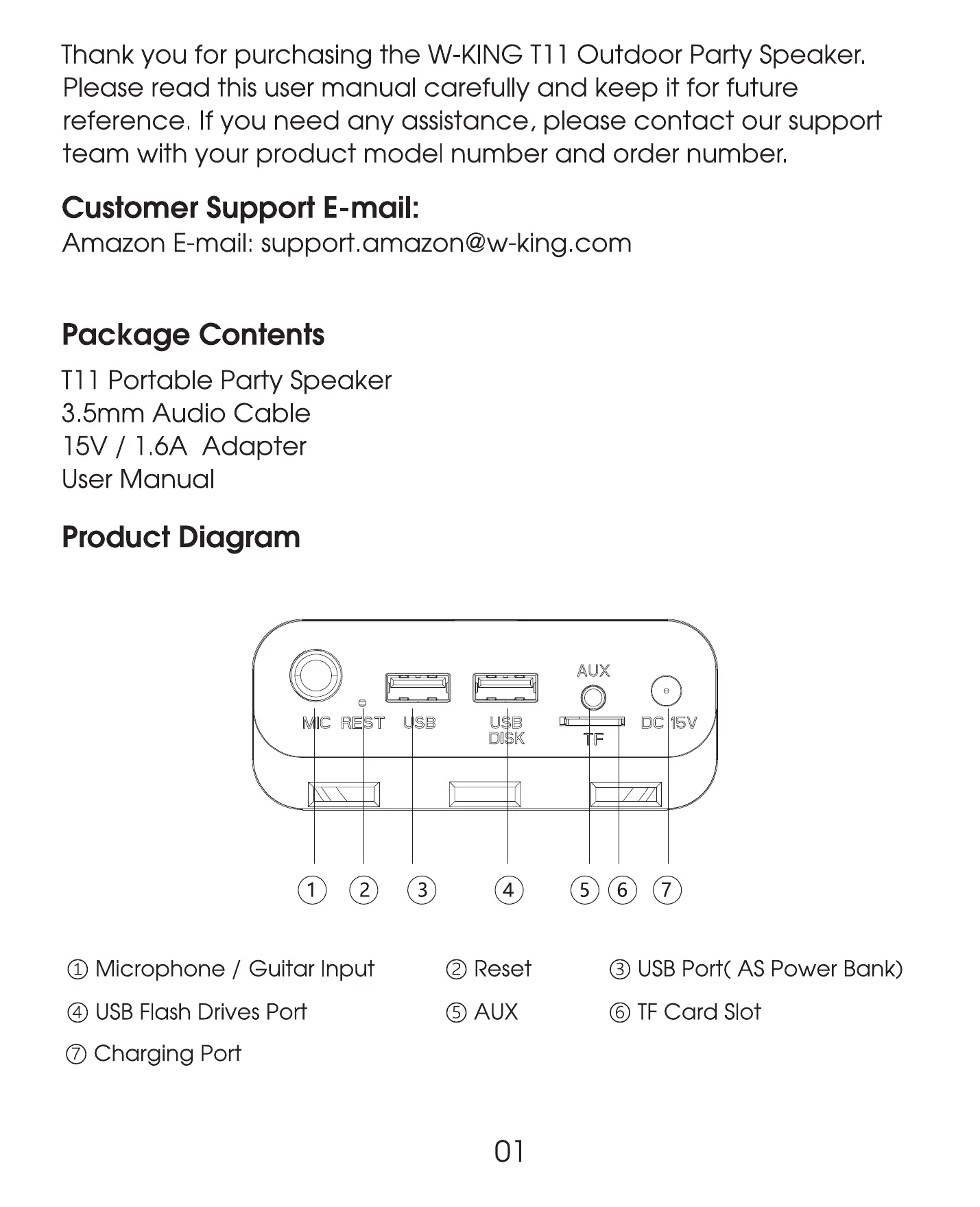 Thank you for purchasing the W-KING Tl 1 Outdoor Party Speaker.