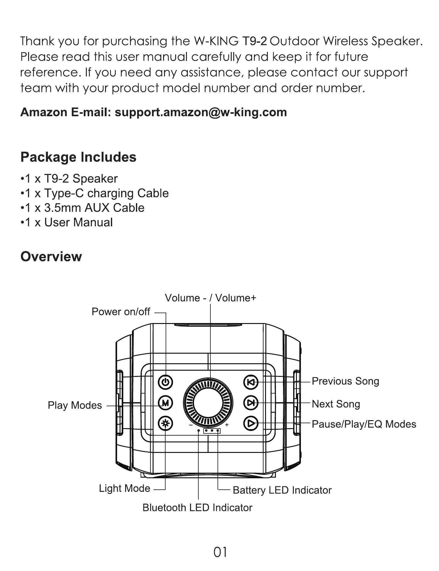 Thank you for purchasing the W-KING T9-2 Outdoor Wireless Speaker.