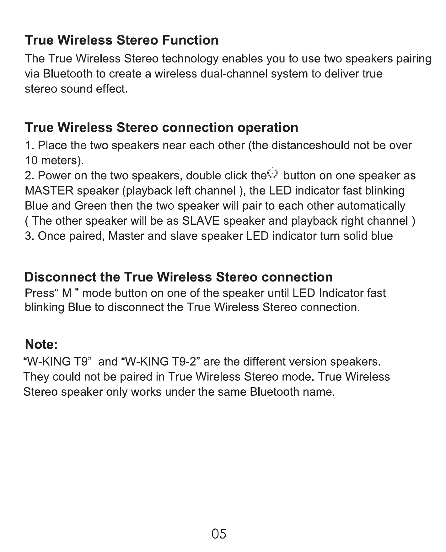 "W-KING T 9" and "W-KING T9-2" are the different version speakers.