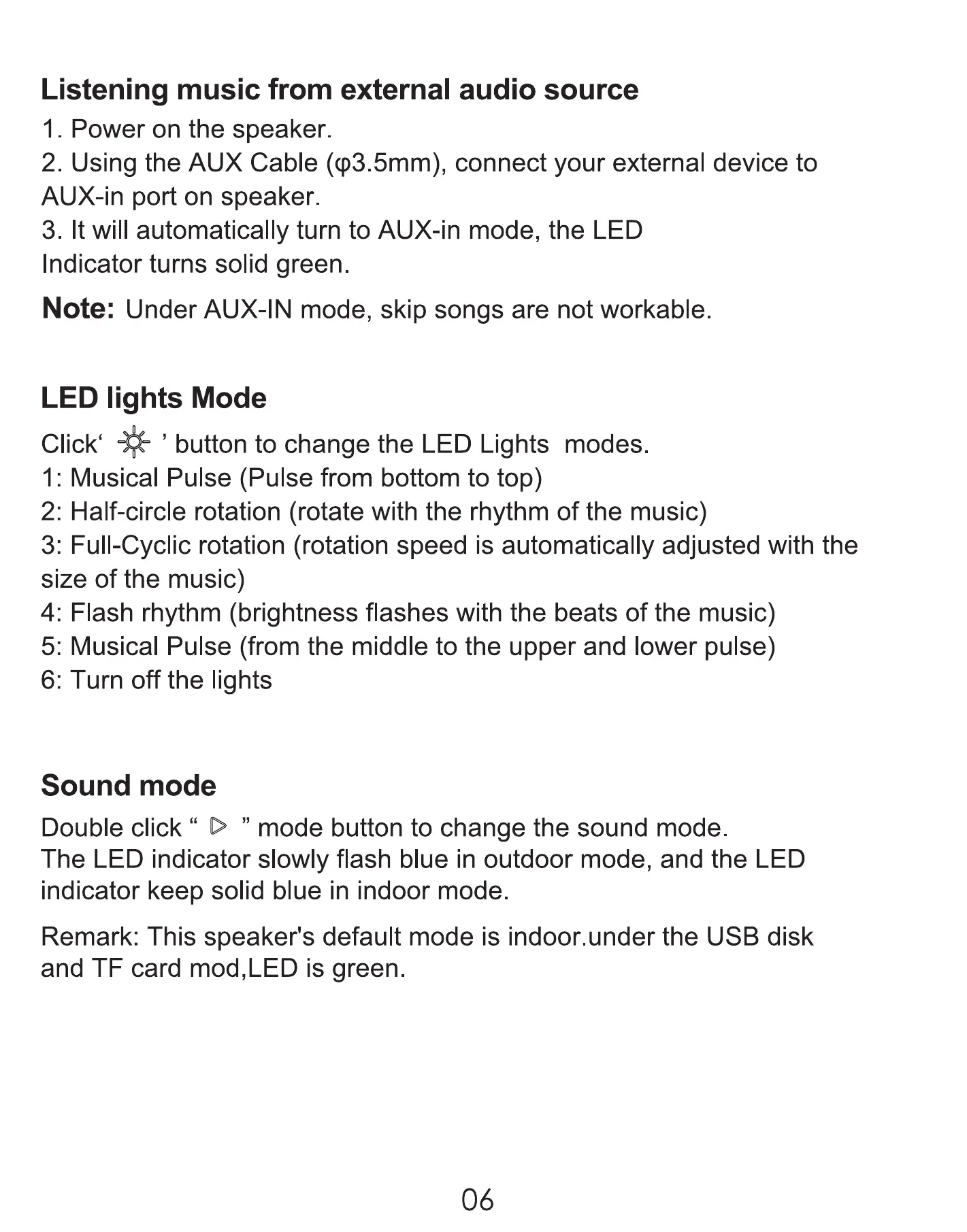The LED indicator slowly flash blue in outdoor mode, and the LED
