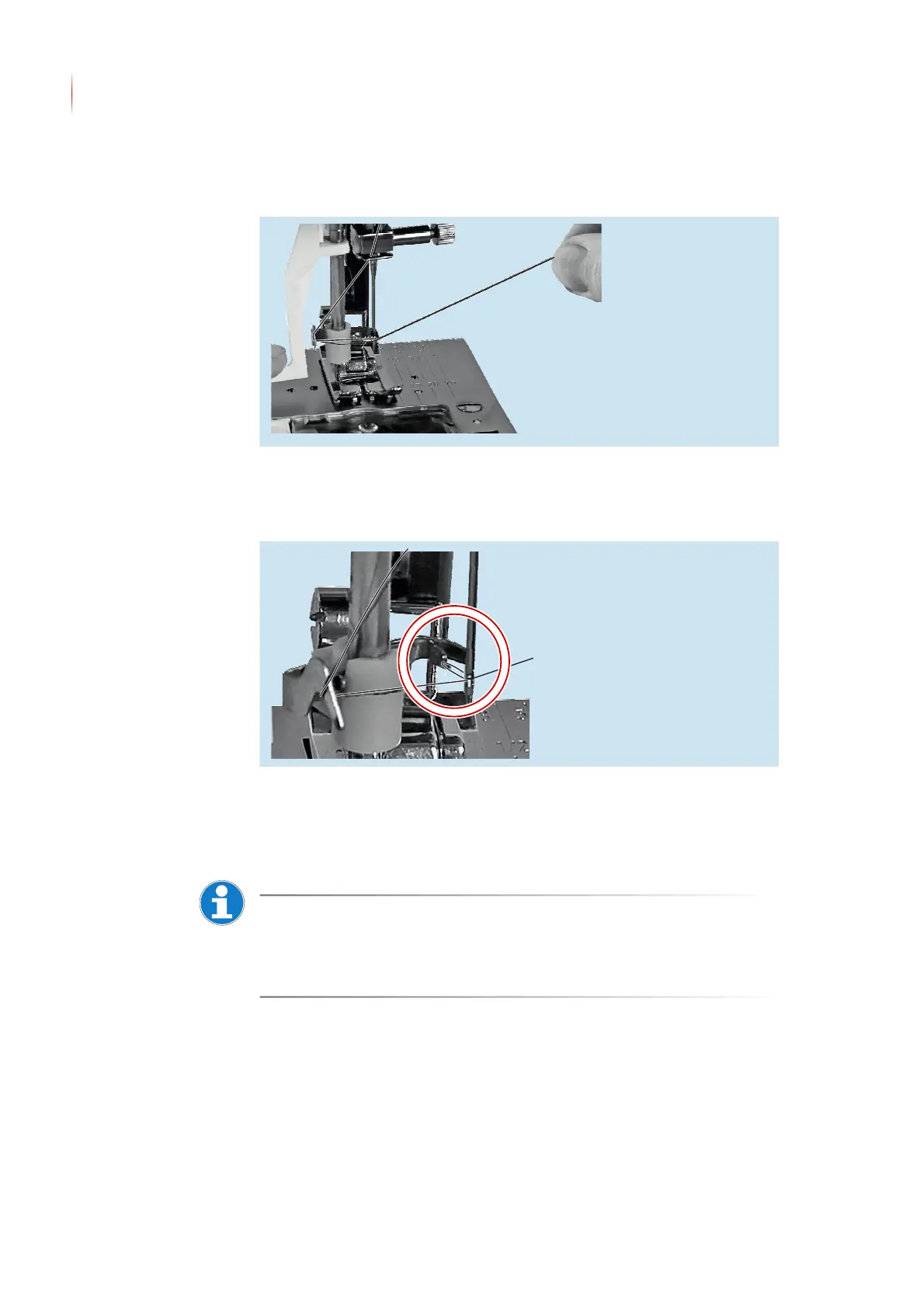 5. Guide the thread from the left to the right beneath the right-hand guide