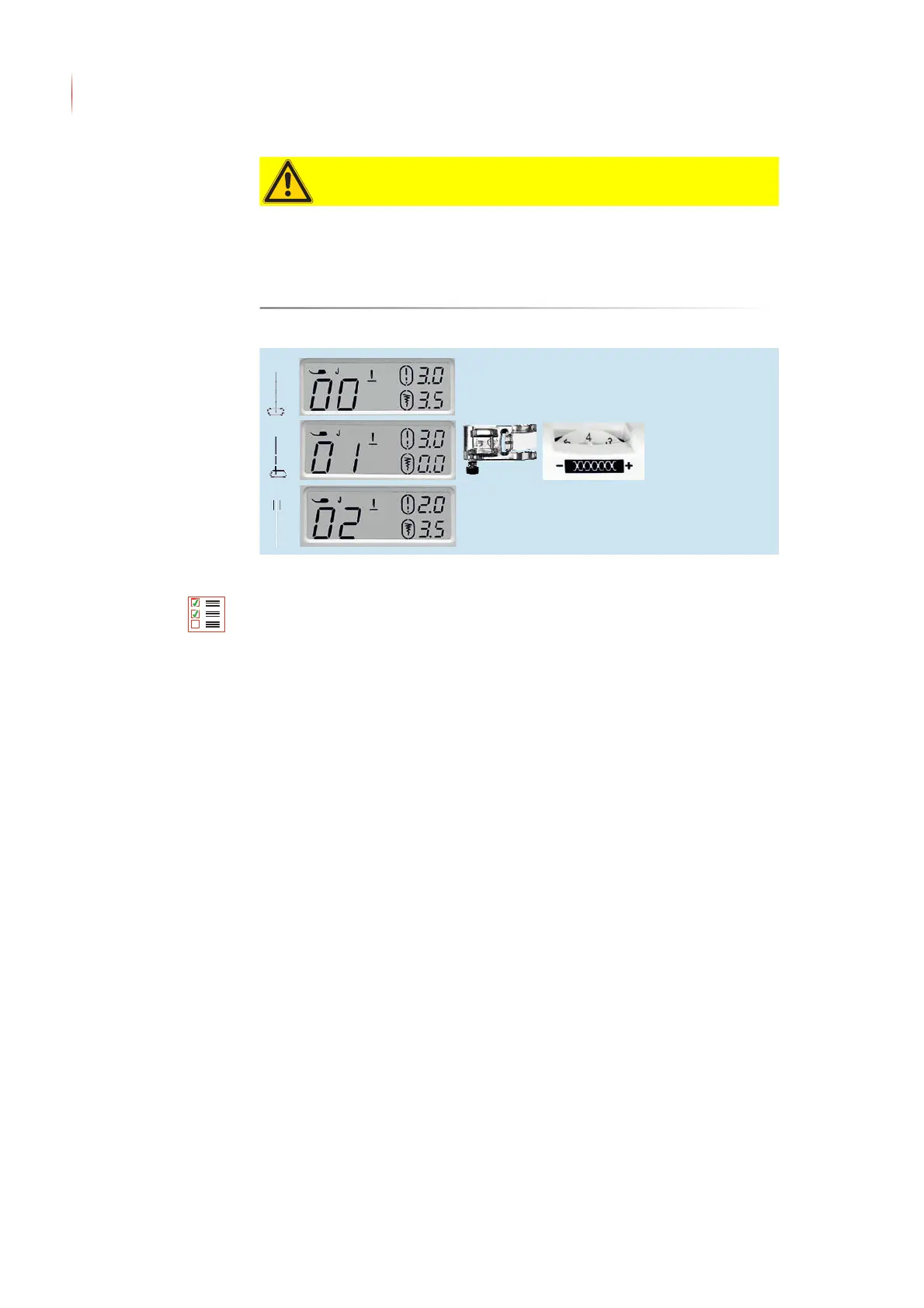 ► Never sew numbers 88 to 99 utility stitches with a twin needle.