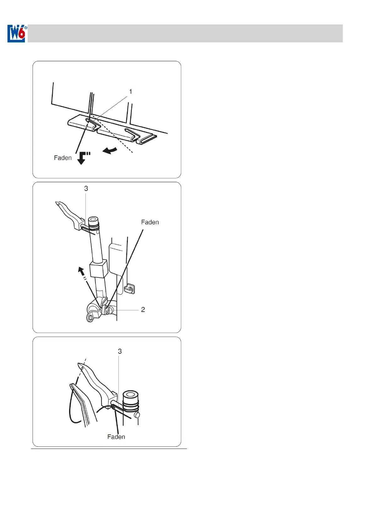 eyelet of the looper thread lever (2) and then