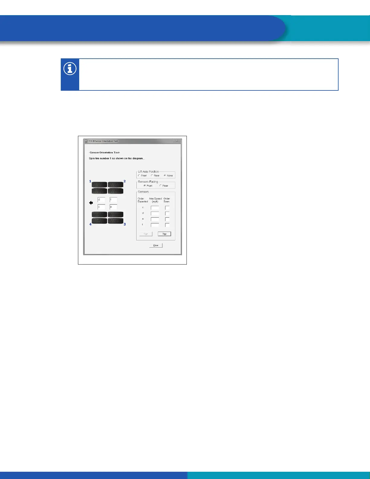 identifi cation boxes are located in the bottom left portion of the Sensor Orientation Test screen.