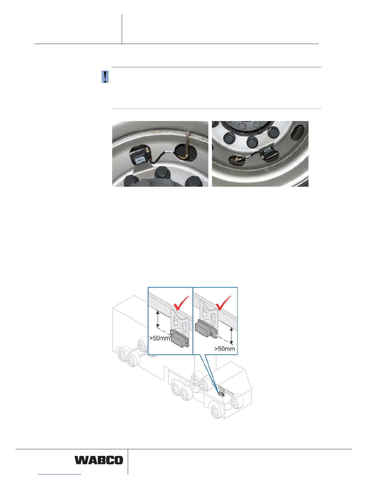 Use flexible valve extensions with tightening clamps (e.g. alligator) or WABCO