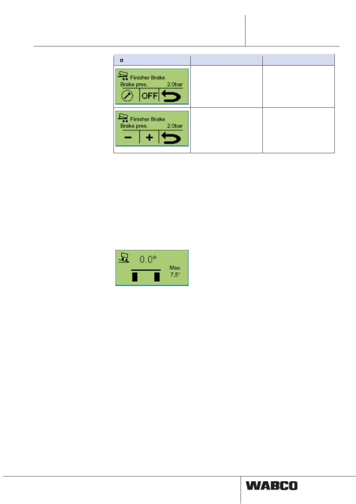 mits setting the nominal braking pressure for the finisher brake by means of the +/-