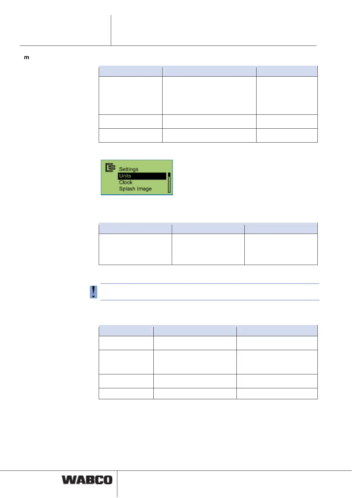 Press <OK> to activate. The currently applied system of units is marked by a ●.