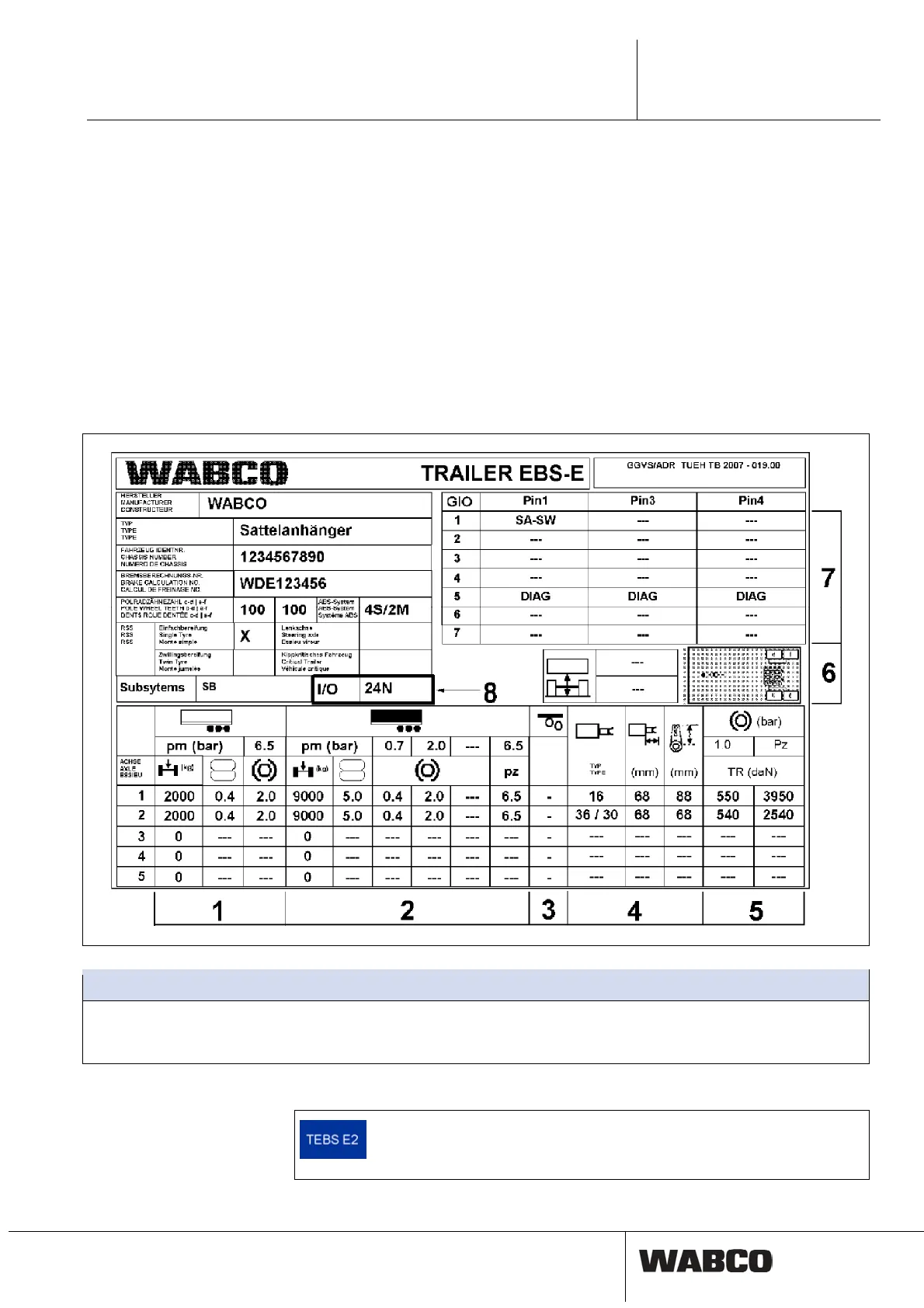 This TEBS E system label must be affixed in a clearly visible place on the vehicle