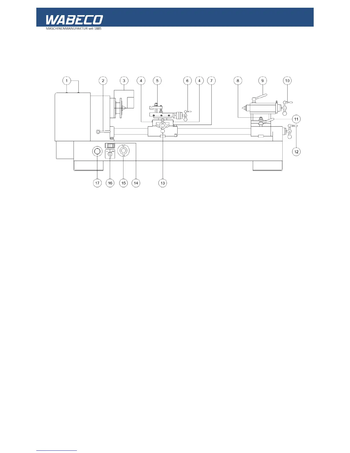 9. Clamping lever for securing the tailstock sleeve
