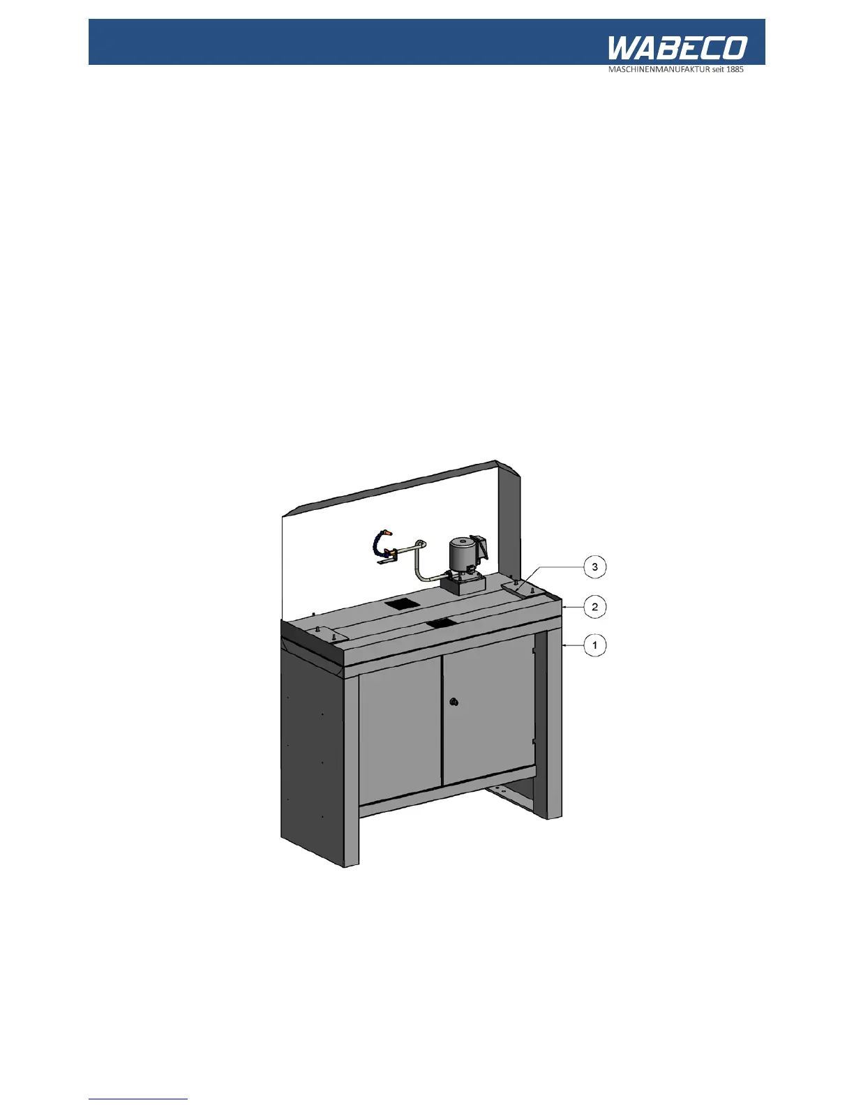 ■ The coolant system (2) is positioned, as shown, on the tool cabinet (1). The two spacer feet’s (3)