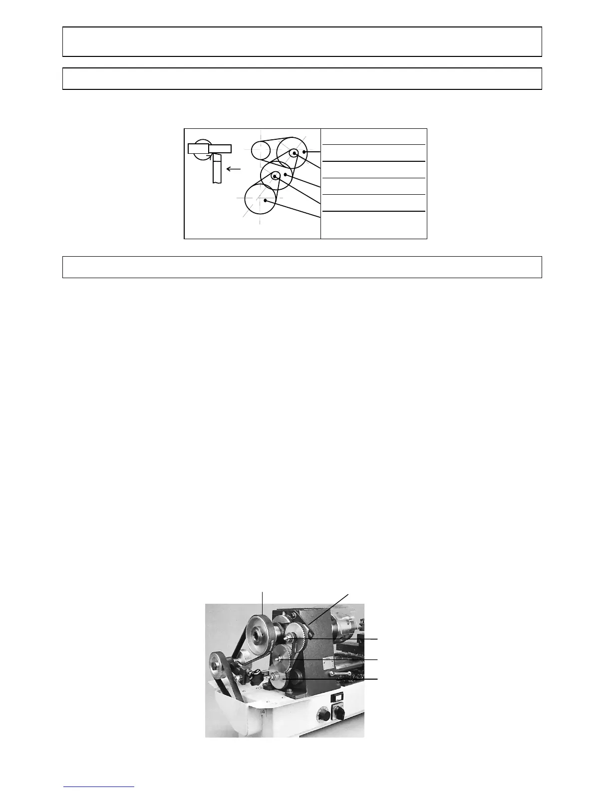 f. Put on toothed belt from main spindle to bolt A and from bolt A to bolt B. Then tense the belt
