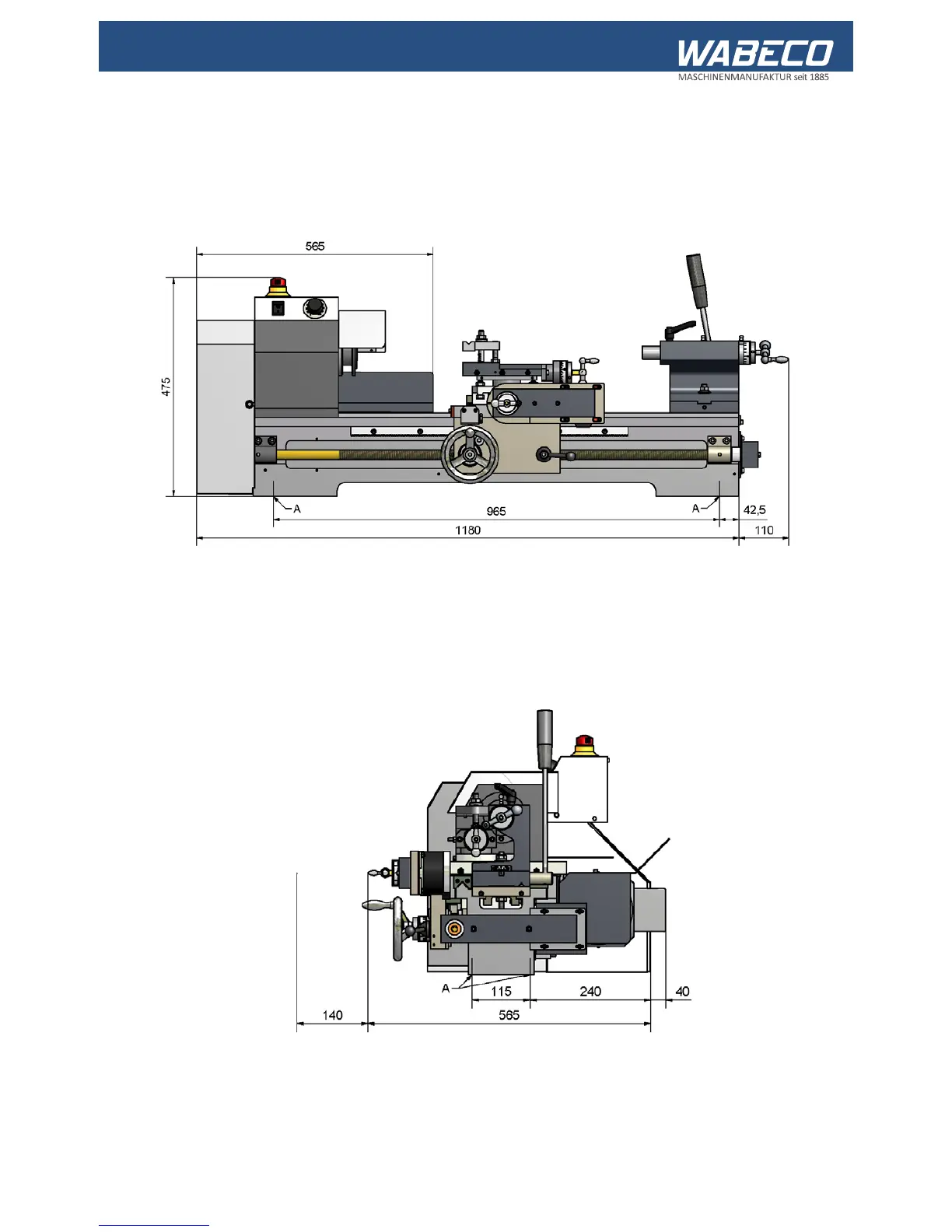 WABECO D6000 - Dimensions of D6000-C Hs with 2.0 Kw Motor with Trapezoidal-Threaded Spindle; Front View; Side View